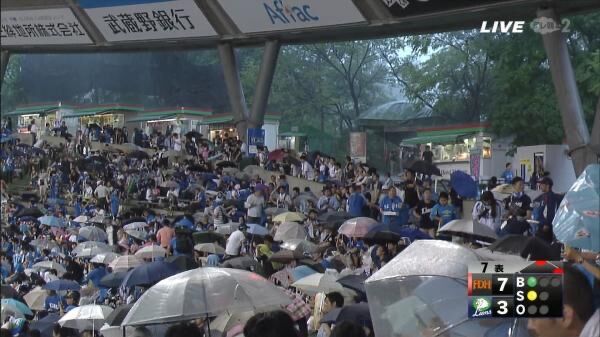 かなり内側の人も傘さしてて草